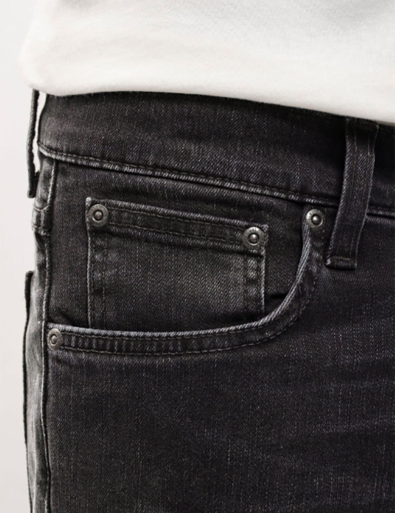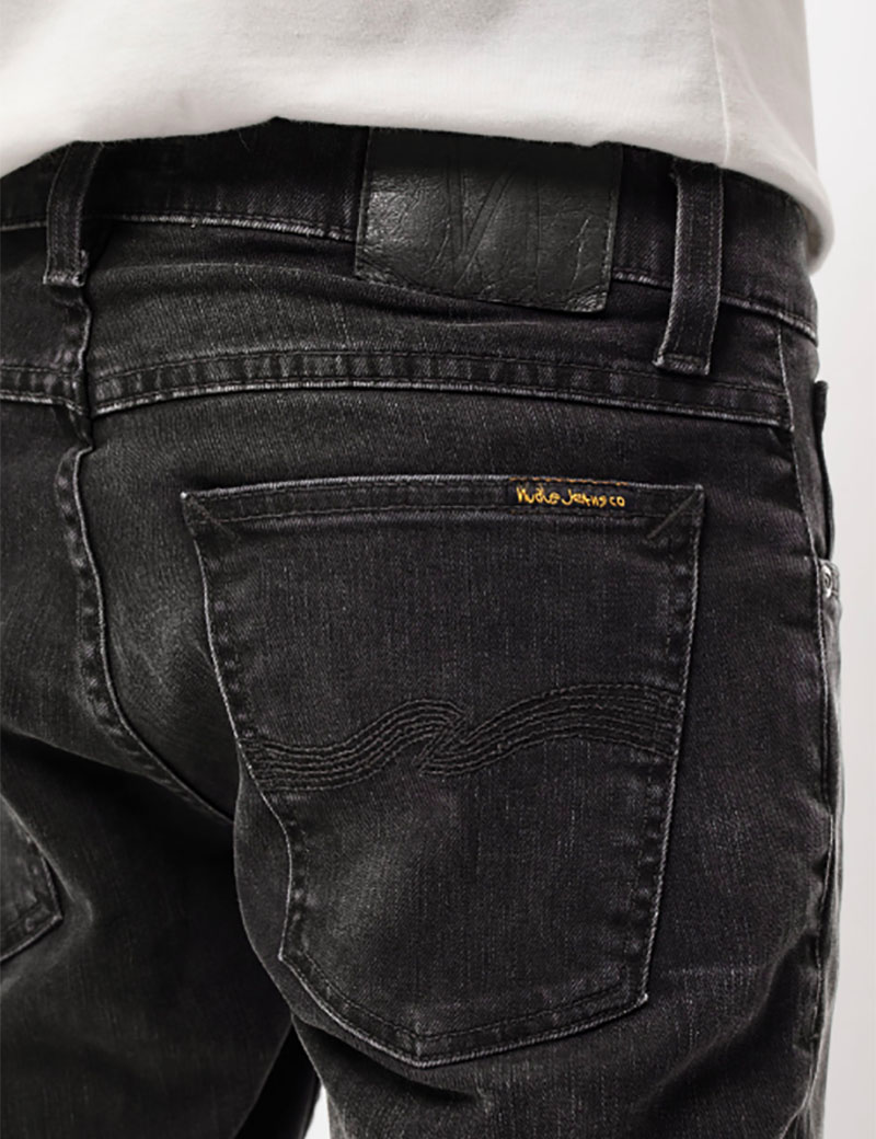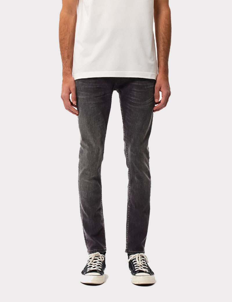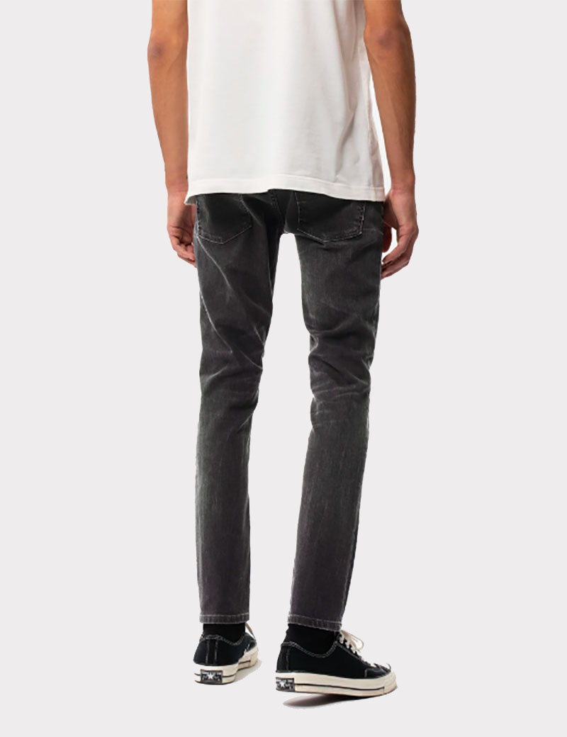 Tight fit jeans made in organic power stretch denim. These black jeans have been washed to a dark grey hue. These black jeans have been washed to a dark grey hue. At seams, near-black tones have been preserved adding depth while the subtle wear marks add a slight contrast.